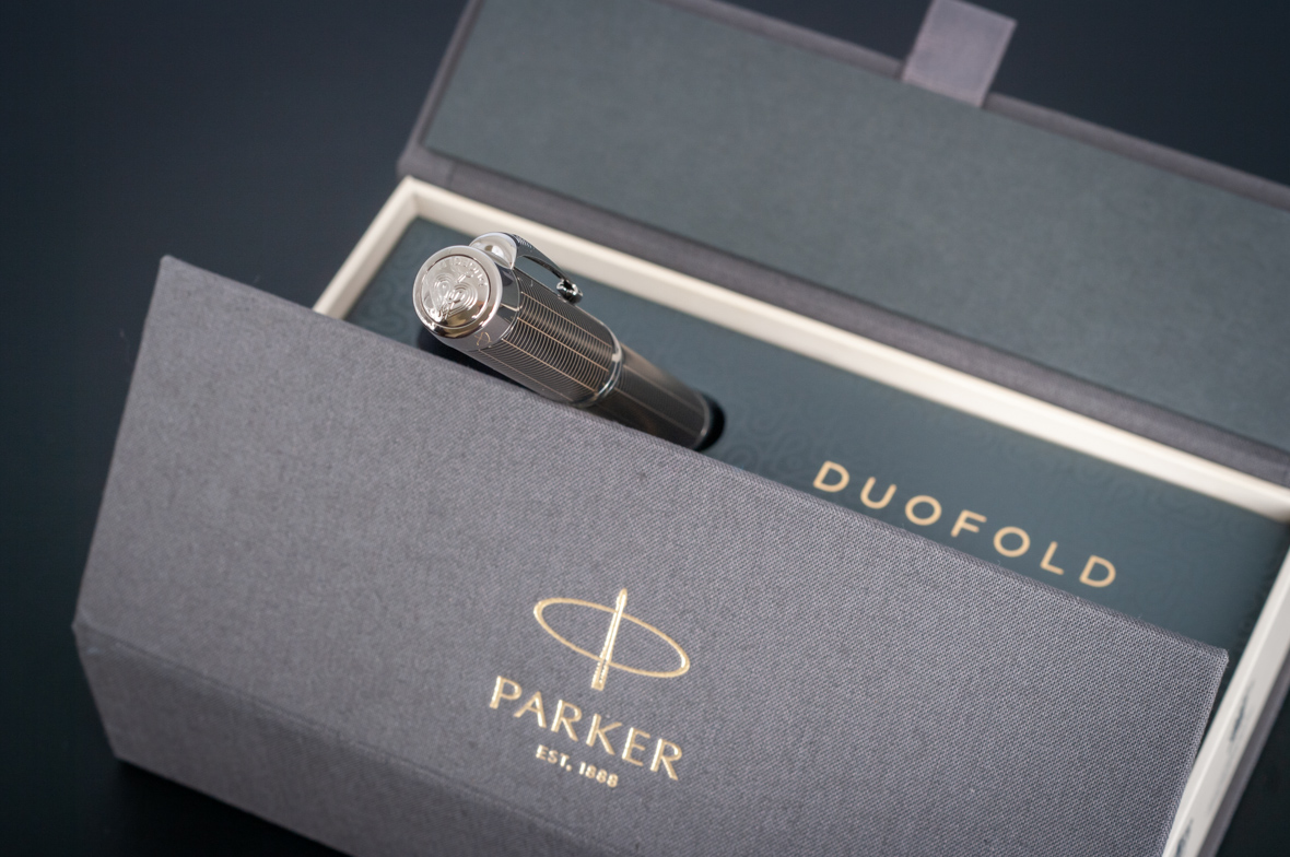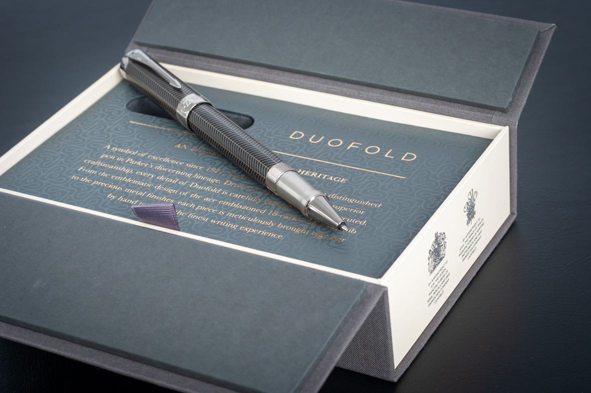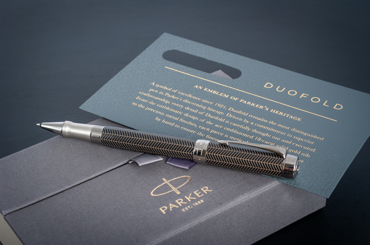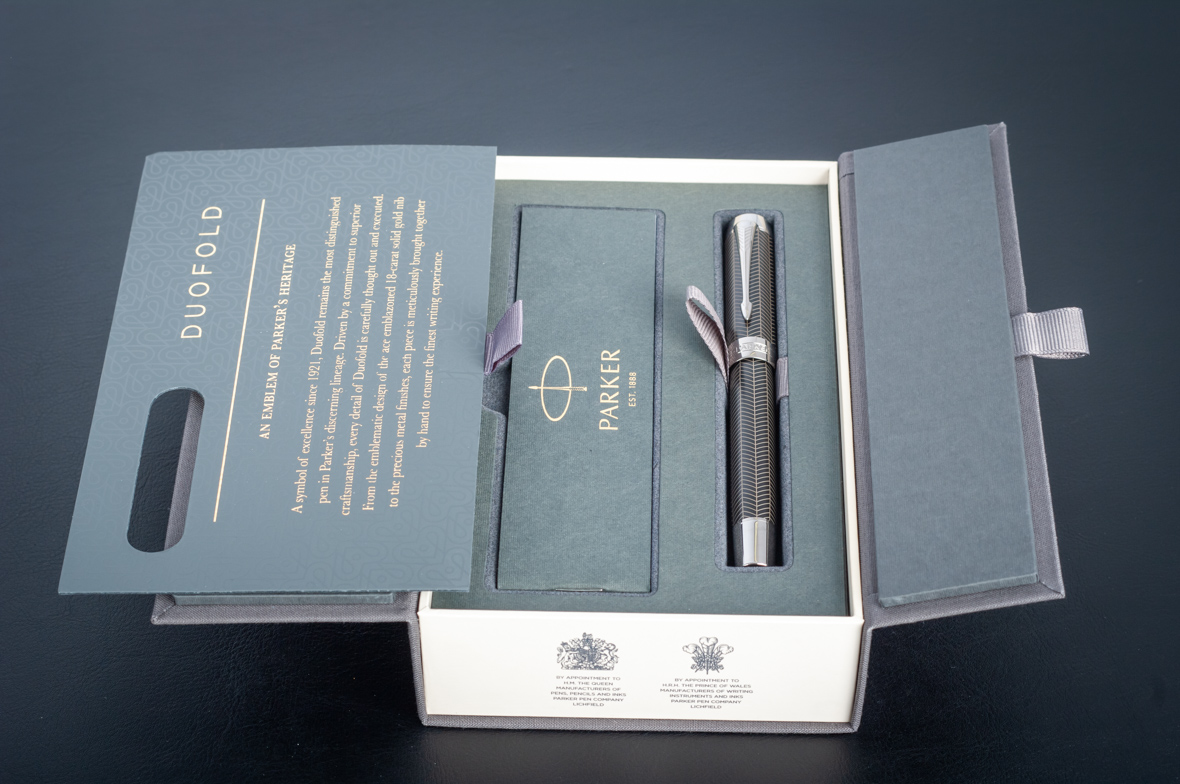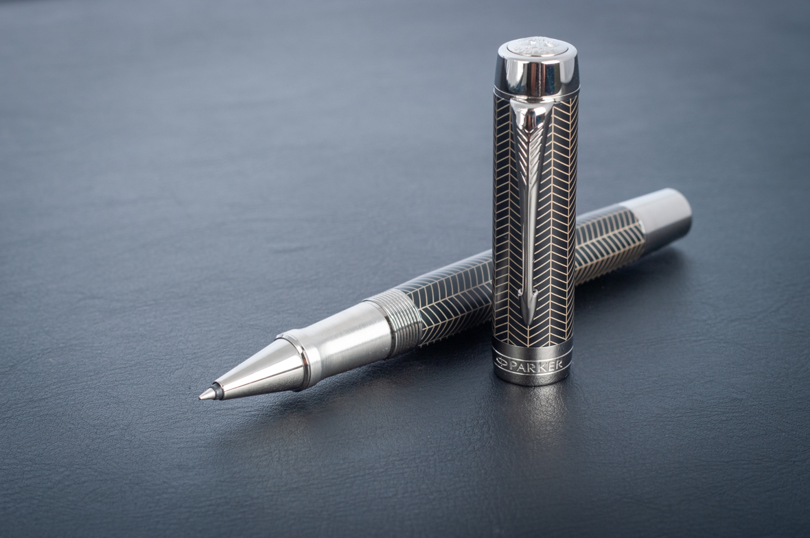 Ручка роллер Parker Duofold Prestige Centennial Black Chevron CT от официального дилера Parker в Иваново. Вы можете дополнительно заказать гравировку, которая подчеркнет Вашу оригинальность и придаст памятность статусному подарку. Все ручки Паркер поставляются в фирменном футляре.